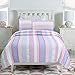 Cozy Line Home Fashions Pink Rose Romantic Chic Lace Floral Flower Printed 3D Stripe Cotton Bedding Quilt Set Reversible Coverlet Bedspread for Girls Women (Lilac Stripe, Twin - 2 Piece)