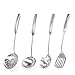 Newness Kitchen Utensil Set, 4pcs - 304 Stainless Steel Cooking Utensil Set with Skimmer Slotted Spoon, Spatula Turner, Spaghetti Server and Soup Ladle, Heat Resistant Kitchen Gadgets Tools for Gift
