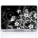 Meffort Inc 15 15.6 Inch Laptop Notebook Skin Sticker Cover Art Decal (Included 2 Wrist pad) - Black White Flower Butterfly
