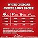 Basic White Cheddar Cheese Sauce Recipe: To mix a white cheddar sauce, melt 1/4 cup of butter or margarine over medium heat in a small saucepan. Once melted, add 1/4 cup of milk and whisk in 2 tablespoons of White Cheddar Powder. Heat until sauce reaches 180F, then cook for an additional 5 minutes, stirring occasionally, until sauce is thickened. Serve with french fries, soft pretzels, or tortilla chips, or pour over cooked pasta for an easy stovetop white cheddar mac and cheese.