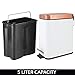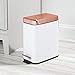 mDesign 1.3 Gallon Rectangular Small Steel Step Trash Can Wastebasket, Garbage Container Bin for Bathroom, Powder Room, Bedroom, Kitchen, Craft Room, Office - Removable Liner Bucket - White/Rose Gold