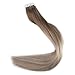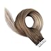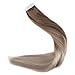 Full Shine 16" Balayage Tape in Extensions Glue in Hair Extensions Human Hair Ombre Color #8 Ash Brown Fading to Blonde #60 and #18 20Pcs 50 Gram