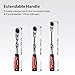 💎FLEXIBLE HEADS & Extendable-- 180-degree flexible head that allows you to easily reach fasteners at almost any angle. Provides a longer reach and increased torque, 6.7 to 8.6 inches (170 to 220 mm).
