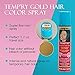 - NO-COMMITMENT PIGMENTED COLOR, GO FOR THE GOLD: This hairspray doesn't just add a pop of gold but you will be able to build and blend the saturation to create your unique color. It's a perfect tool to kick your temporary dye job up a notch. Spray less for a more subtle look or hit your strands harder for something more extreme. This is also the right product for when you don't want to take the plunge and commit to hair color!