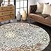 LEEVAN Traditional Collection Round Rug 4ft Diameter Oriental Distressed Faux Wool Circular Rugs Non-Slip Backing Accent Vintage Throw Rugs Machine Washable for Living Room Bedroom Bathroom
