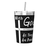 12oz Tumbler Christian Faith Jesus-With God All Things Are Possible Stainless Steel Cup With Straw And Lid Spill Proof Bulk Double Wall Vacuum Reusable Water Tumblers For Cold Hot Drink