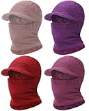 Tivi Tovo 4 Pcs Women Knitted Beanie Hats 4 in 1 Winter All-in-one Hat with Brim Warm Lined Mask Scarf Thermal Caps Soft Windproof Face Ear Protection Balaclavas for Cold Weather Run Ski Cycle Sports