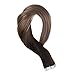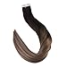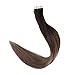 Full Shine Tape Hair Extension Double Sided Stick Tapes 12 Inch Hot Color #2 Fading To #6 And #18 Ash Blonde Glue On Hair Human Adhesive Tape For Extentions Human Hair 20Pcs 30 Gram Thick Ends