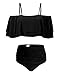 Tempt Me Women Black Two Piece Swimsuit High Waisted Bikini Off Shoulder Ruffle Bathing Suits M
