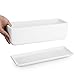 Bring modern style and vibrant plant life to your home or office with this rectangular ceramic planter pot. This planter includes a drainage hole which lets water pass through the soil and keeps plants healthy, and the removable saucer helps to catch the excess water. Its minimalist design is an excellent complement to modern decors, and its small size makes it ideal for display on desk, windowsill and tabletop surfaces. **Plants not included**<p>SPECS: 14.5 W x 5.5 D x 4.75 H (in inches)</p>