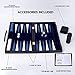 - COMPLETE SET: The backgammon board game set includes 15 white backgammon pieces, 15 blue backgammon pieces as well as an accompanying pairs of dice for each color, a doubling cube, two leather dice cups, and game instructions.