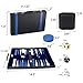GSE Premium Leather Backgammon Board Game Set, Classic Backgammon Game Set with Leather Case, Travel Folding Board Game (Black&Blue, Small)