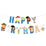 Cartoon Toy Birthday Banner And Garland - Decorative Items For Cartoon Story Party - Theme: Cowboys And Space Heroes - Reusable Party Banner - Indoor And Outdoor Decoration Items