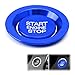 Crafted from blue anodized finish aluminum, featuring screen printed "ENGINE START STOP" lettering/symbol on the top, and equipped with self-adhesive double-sided tape on the back