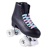 NVGSHO Adult Roller Skats, Professional Double Row Four Wheels Speed Skating Shoes, Aluminum Alloy Base Frame, High Top Pu Leather Ankle Protection Design, with Bags, Unisex,Purple1,Men's US7.5