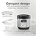 - 1.5 QUART CAPACITY: Smaller than typical multi cookers, this scaled-down verison is great for making enough for 1-2 people and for kitchens where space is limited, like dorms and studio apartments. Multi cooker pot has the capacity for 6 cups cooked rice or 3 cups uncooked rice.