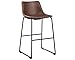 - MID-CENTURY INSPIRED: These counter-height bar stools with bucket seats upholstered in medium brown faux leather upholstery and tubular metal bases in a black finish have a charmingly vintage tone