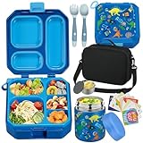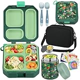 wiwens Bento Lunch Box for Kids with 12oz Soup Thermo Leak-Proof Lunch Food Container with 5 Compartment Thermo Hot Food Jar and Insulated Lunch Bag for Kid Toddler Girls Boys to School