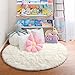 PAGISOFE Cream White Round Rug Circle Rugs 4 x 4 ft Small Fluffy Shaggy Carpets and Rugs for Girls Boys Baby Kids Bedroom Furry Comfy Teepee Mats Circular Rugs for Reading Area Nursery Room