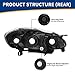 Vehicle compatibility: headlights assembly compatible with 2003 2004 2005 2006 2007 2008 Corolla; low beam: 9006 high beam: 9005; bulbs are not included