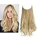 Short Halo Hair Extension Dirty Blonde Curly Synthetic Hairpiece Hidden Wire Headband for Women 12 Inch 3.5 Oz Heat Resistant Fiber No Clip SARLA (M05&16H613)