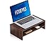 Stow laptop underneath monitor riser for space-saving storage