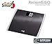 - Generous and stable platform: 15"x 13" extra wide black stainless steel platform on a glass base provides comfort for most foot sizes,