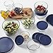 Anchor Hocking 18 Piece Glass Storage Containers with Lids (9 Glass Food Storage Containers & 9 Navy Blue SnugFit Lids)