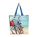Earthwise Reusable Grocery Bags Shopping Totes Stylish Gift Bag Heavy Duty Laminated Material Beach Print(Pack of 6)