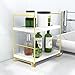 【COMPACT SHELF ORGANIZER】- Light luxury metal sense and compact design, 2-Tier the storage area. Stackable storage can efficiently use space and bring a tidy desktop. Organize all of your bathroom essentials; Perfect for makeup, hair spray, lotion and other cosmetics. They are always ready for you.