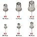 This rivnuts kit contains 199-Piece of Stainless Steel Rivet Nuts, 55-piece of M3 Stainless Steel Rivet Nuts, 50-piece of M4 Stainless Steel Rivet Nuts, 35-piece of M5 Stainless Steel Rivet Nuts, 40-piece of M6 Stainless Steel Rivet Nuts, 12-piece of M8 Stainless Steel Rivet Nuts, 7-piece of M10 Stainless Steel Rivet Nuts.