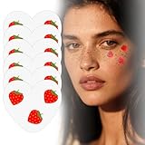 Boko 6Pcs Red Strawberry Speckles Temporary Tattoos, Waterproof and Long Lasting Makeup Patches, Face Strawberry Freckles for Festival Concert Summer Beach Pool Themed Party Beauty Face Makeup