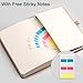 - A5 Upgrade Journal Notebook: The journaling notebooks also feature 2 colored ribbon bookmarks to help you easily keep track of important pages. 1 elastic closure keeps your notebook securely closed, protecting your notes and thoughts. 1 back inner pocket for stashing notes, etc. Including 1 elastic pen loop and index tab stickers. A5 size 5.75" x 8.38", perfect for carrying in a bag or purse, making it a great addition to your daily routine