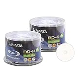100 Pack Ridata 6X BD-R BDR 25GB Single Layer Blue Blu-ray White Inkjet Hub Printable Recordable Blank Media Disc with Spindle Packing
