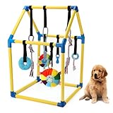 IAIGOGO Puppy Play Gym with 8 Hanging Toys for Teething &Chewing, Interactive Activity Center for Small Dogs to Relieve Boredom & Anxiety, Indoor Enrichment Toys to Keep Them Busy (Square)