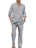 Ryannology Men 2 Piece Linen Sets Outfits Drawstring Pants Button Down Long Sleeve Shirts Casual Beach Wedding Fashion Sets