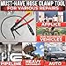 - Easy One-Hand Use: Place the radiator hose clamp removal tool on the clamp switch, compress with one hand, and adjust your hose size with the other. Lock the spring band clamp securely