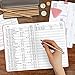 - PREMIUM MATERIALS & EXTRAS: This checkbook ledger notebook has a premium-quality vegan leather hardcover with an elastic band, a pen holder, an expandable pocket for checks and bills, 1 ribbon bookmark, and thick 120gsm paper. It comes in A5 format, measuring 5.8 inches by 8.3 inches. Inside the accounting book, you will also find a filled-out example of how to use the register. The accounting ledger book is designed to be light and compact enough to carry with you throughout the day.