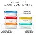 - EASY MEAL PREP - 5 Plastic containers measuring 1/2 cup (4oz.) with measurement lines for convenience. Perfect for packing snacks and meals with precision.