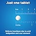 - JUST ONE TABLET prevents and relieves heartburn due to acid indigestion brought on by eating and drinking certain foods and beverages. This heartburn medicine lasts up to 12 hours. Use for adults & children 12 years and over. This product is gluten free.