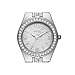 Dial: Silver, round sleek alloy metal case with a white mother-of-pearl dial and glitz accents.