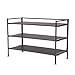 - MULTIPURPOSE SHELVING — The three shelves (25.5” W x 11.6” D) fit various sizes of shoes and footwear, clothing, and handbags with 5.5” of space between tiers and 3.25” beneath the bottom shelf to store low-profile shoes and sandals.