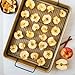 A high-sided nonstick half sheet, for pot-luck sized portions of cakes, lasagna or bars, with a black non-stick rack insert for making jerky, dried fruits, crisp fries, roasts, perfect oven-baked bacon and more