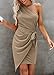 PRETTYGARDEN Women's Fashion One Shoulder Ruched Bodycon Fitted Cocktail Party Mini Dress (Dark Khaki,Medium)