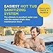Hot Tub Sanitizing System: FROG @ease Floating System floats when working, flips when empty; its perfect for hot tubs up to 600 gallons; replace the Mineral Cartridge only once every four months and the SmartChlor Cartridge every 3 to 4 weeks