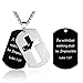 - Include 2 dog tag. Bible Verse Luke 1:37 engraved on the black, the steel tag is simple hollow cross designed. It has a bit of weight to wear, but not too heavy either