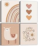 Quzenu Boho Rainbow You Are My Sunshine Canvas Prints Framed for Baby Girl Room Decor Wall Art for Girl Nursery