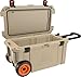 VOLUME: True 65 quart internal volume. Interior (LxWxD) - 26.50 x 12.00 x 12.60 in inches. Ideal 65 QT cooler on wheels for camping, fishing, tailgaiting, and beach.