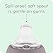 - Sippy cup with spill-proof spout designed to be gentle on gums