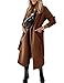 Womens Classic Coat Lapel Collar Open Front Belted Long Jacket